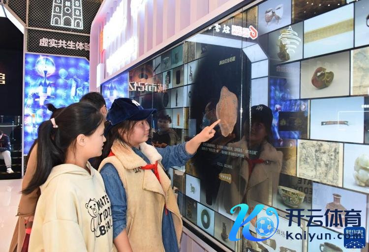 3月27日,两名小学生在体验“数字文博互动”名目。