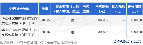 发布日期:2025-09-16 14:10 点击次数:126本站音信,7月3日华泰柏瑞基金责罚有限公司发布《华泰柏瑞南边东英新友所泛东南亚科技来去型灵通式指数证券投资基金发起式都集基金(QDII)调节大额申购(含按期定额投资)业务的公告》。公告中请示,为保证本基金的踏实运作,保护基金份额捏有东说念主利益,以及字据《华泰柏瑞南边东英新友所泛东南亚科技来去型灵通式指数证券投资基金发起式都集基金(QDII)基金左券》的关系律例,自2025年7月3日起华泰柏瑞南边东英新友所泛东南亚科技来去型灵通式指数证券投资基金发起式都集基金(QDII)调节大额申购(含按期定额投资)业务,申购上限金额为0.8万元,下属分级基金调节明细如下: