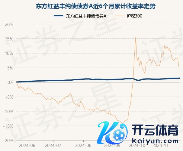 本站音书,11月22日,东方红益丰纯债债券A最新单元净值为1.0531元,累计净值为1.1381元,较前一往明天高涨0.02%。历史数据清晰该基金近1个月高涨4.09%,近3个月高涨4.26%,近6个月高涨5.21%,近1年高涨7.88%。该基金近6个月的累计收益率走势如下图:
