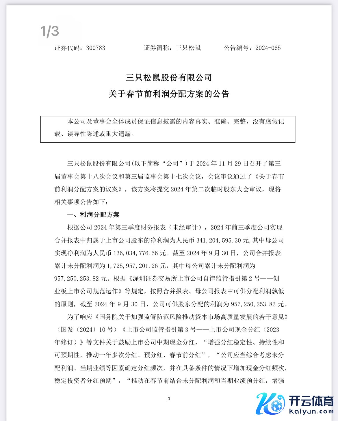 就在上月底,三只松鼠也败露了春节前利润分派决策。该公司11月30日称,拟向合座鼓动每10股派发现款红利1.25元,总共拟派现款额约为5009.12万元。