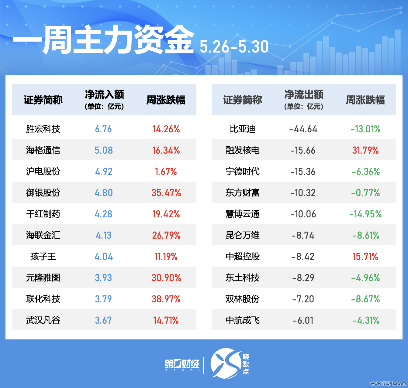 个股方面,本周胜宏科技、海格通讯、沪电股份获主力净流入居前,隔离为6.76亿元、5.08亿元、4.92亿元;净流出方面,比亚迪、融发核电、宁德期间隔离遭主力净流出44.64亿元、15.66亿元、15.36亿元。