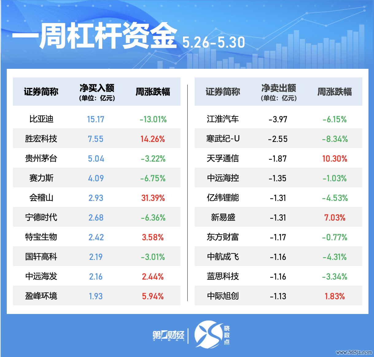 比亚迪本周获融资净买入居首,净买入额为15.17亿元。胜宏科技、贵州茅台、赛力斯净买入额居前,金额隔离为7.55亿元、5.04亿元、4.09亿元;江淮汽车、寒武纪-U、天孚通讯遭净卖出额居前,金额隔离为3.97亿元、2.55亿元、1.87亿元。