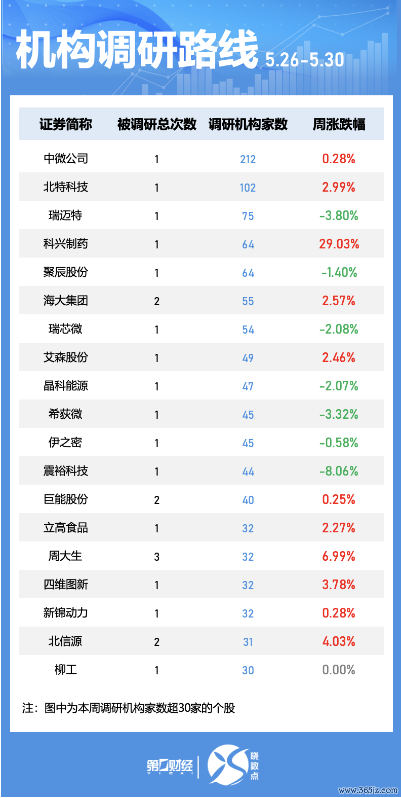 从被调研总次数来看,巨室激光、三友联众获机构调研4次,能辉科技、周大生获调研3次。