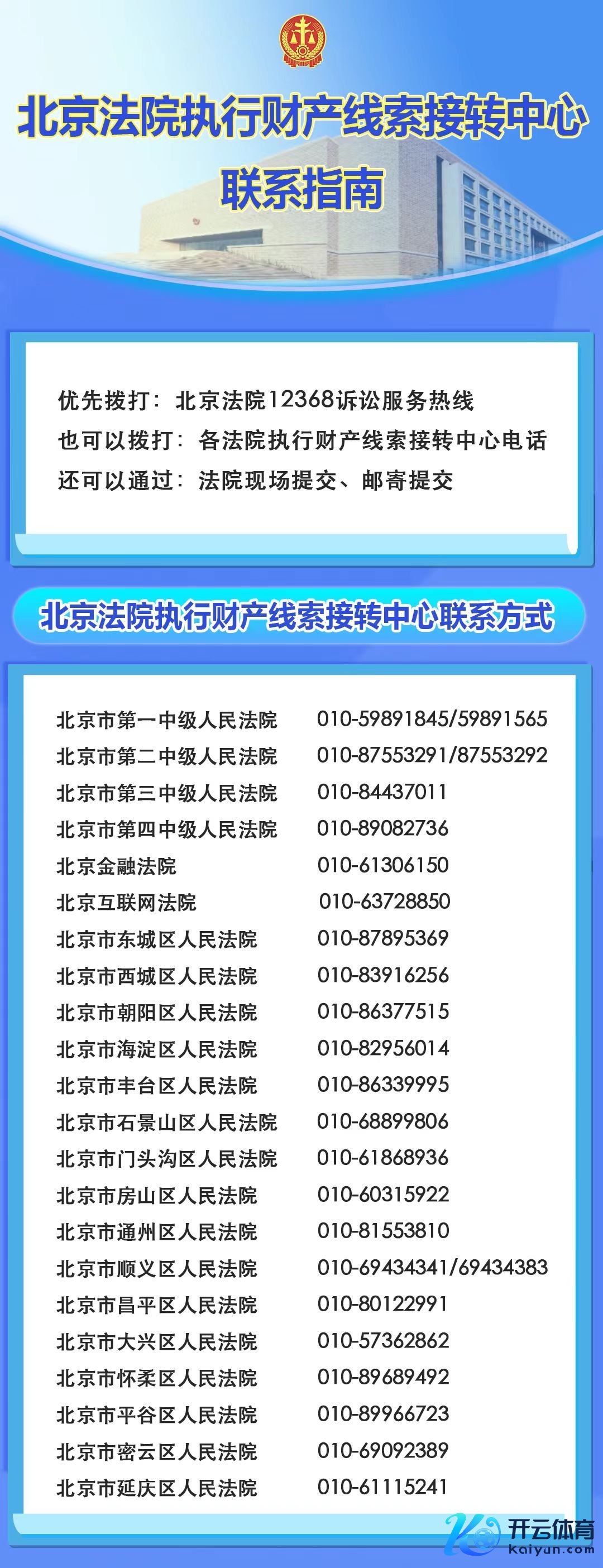 北京法院施行财产萍踪接转中心联系指南。北京高院供图