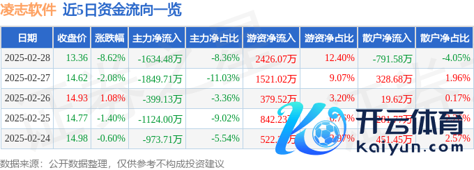 本站音信,杀青2025年2月28日收盘,凌志软件(688588)报收于13.36元开云体育,下落8.62%,换手率3.53%,成交量14.1万手,成交额1.96亿元。