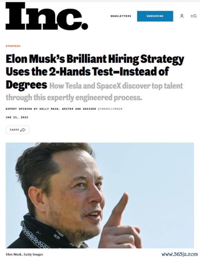 创举东谈主马斯克对东谈主才有两个规范:first hand(第一手熏陶)和 hands-on(出手才调),早期他会亲自参与总监级及以上职位的口试,他以为该级别可能班师影响企业文化。