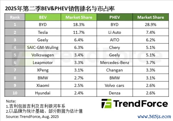 近日,阛阓调研机构TrendForce集邦商量公布2025年第二季度群众插混车销量TOP10榜单,其中,问界进展亮眼,强势置身前三。