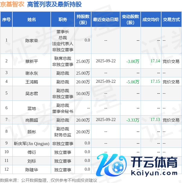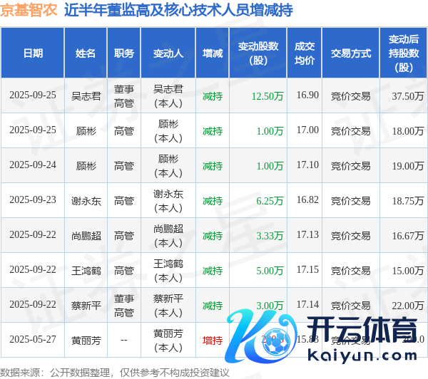 京基智农近半年内的董监高及中枢手艺东谈主员增减抓细目如下: